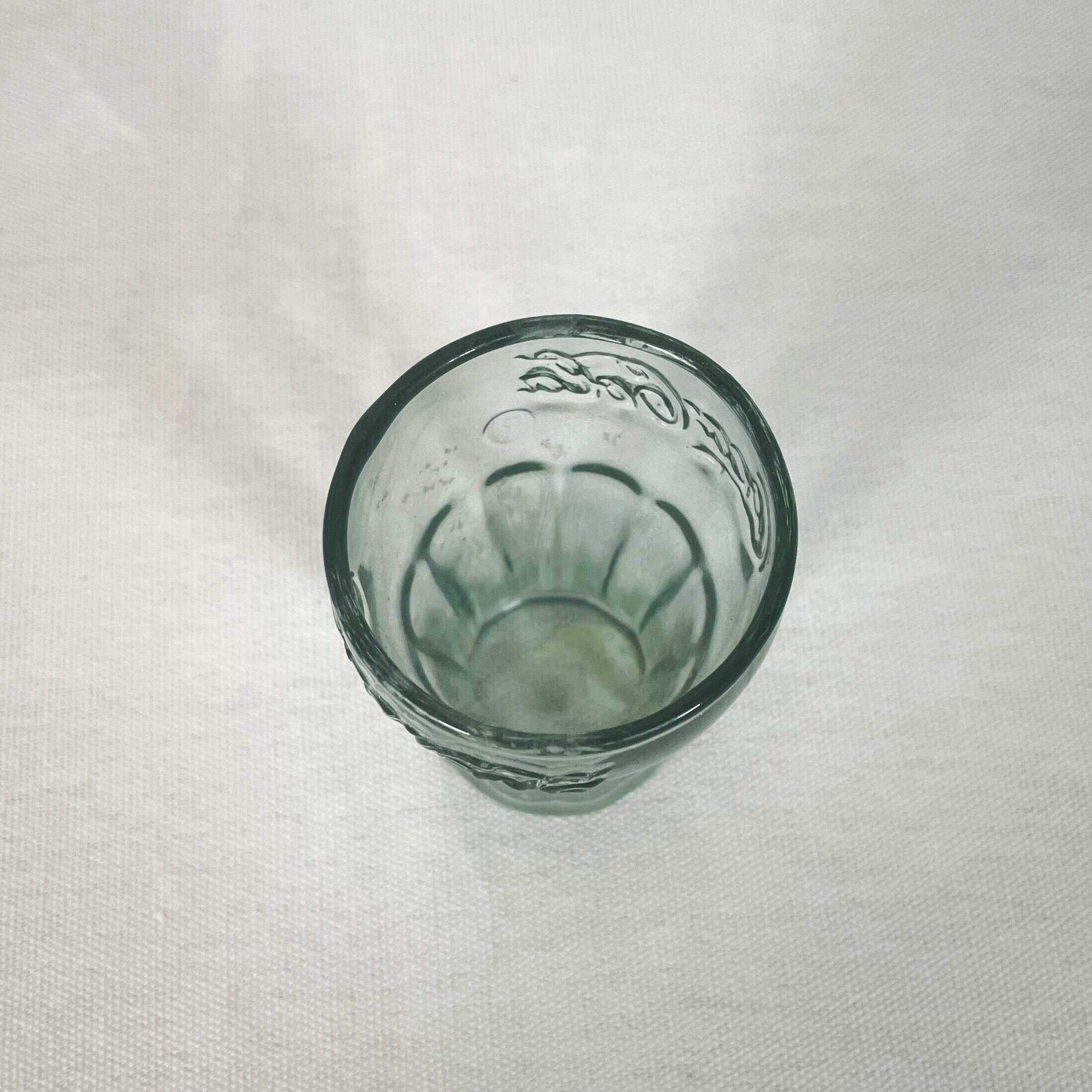 薄いグリーンがかったガラスで出来ていてエンボスロゴもしっかり入っており小さいながらチープな感じではなくちゃんとレトロな雰囲気のあるアイテム。