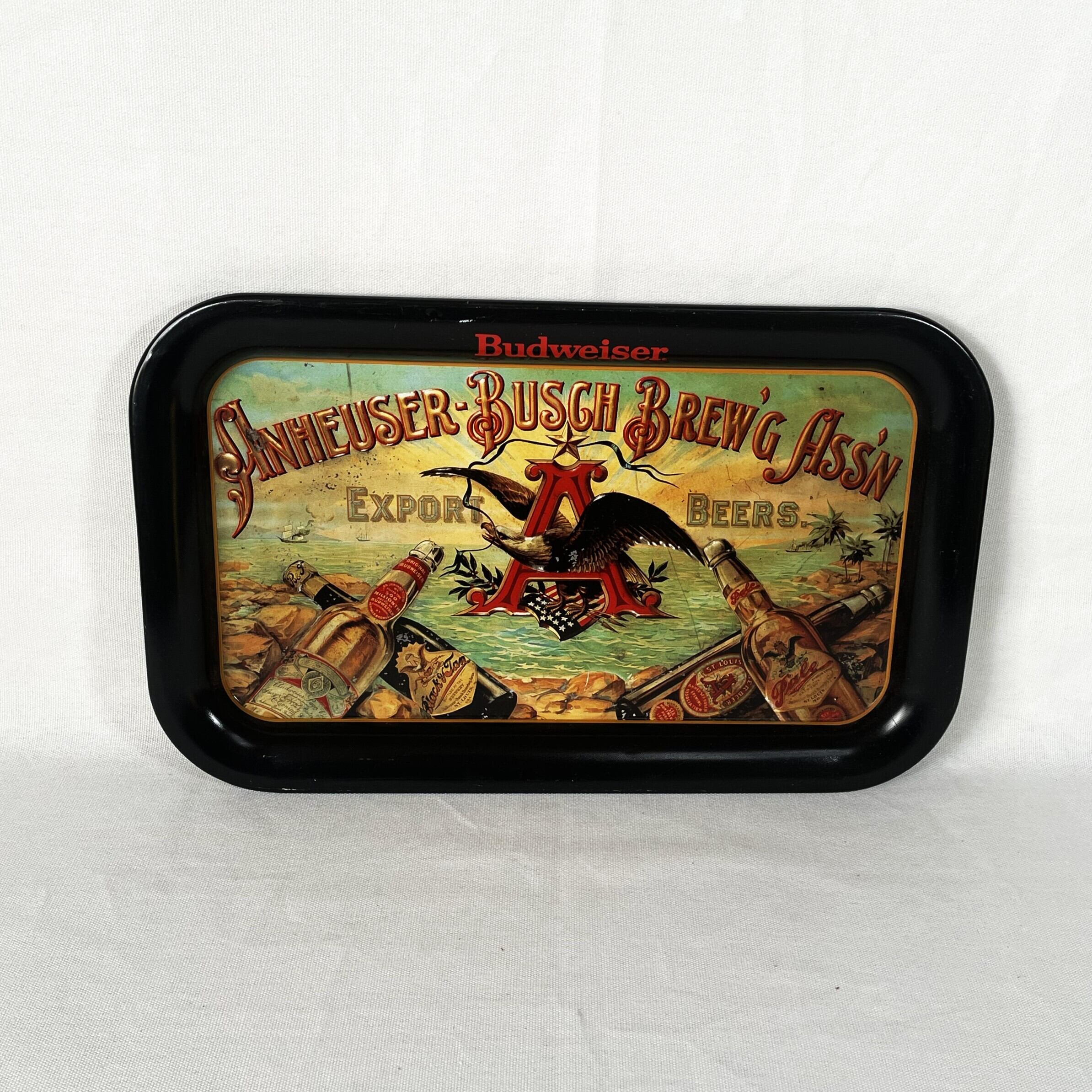 1899年のアンハイザーブッシュの広告がプリントされたトレイでクラシックでレトロな雰囲気のあるアイテム。