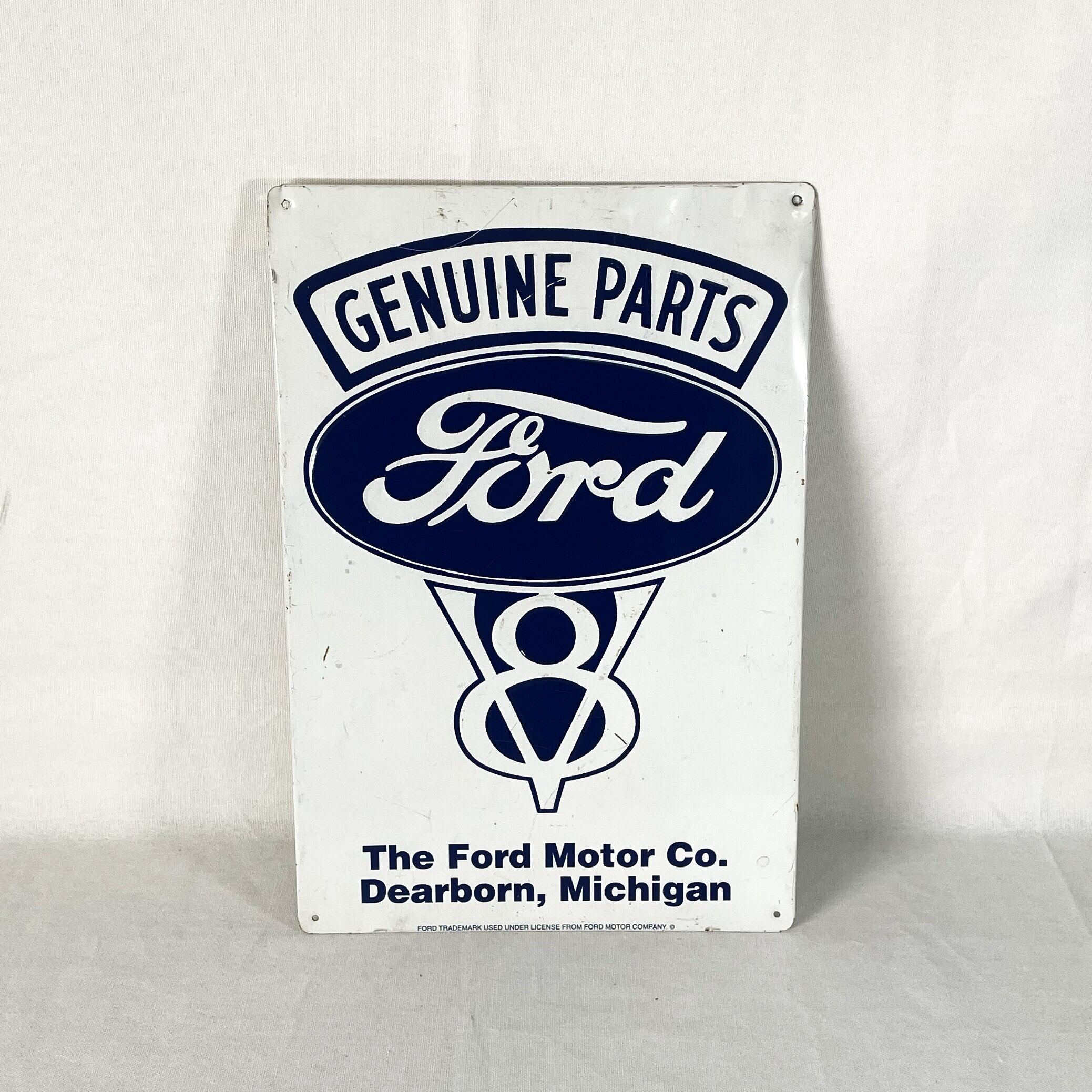アメリカで大人気のフォードの看板ですが、ヴィンテージ風のプリント物や版権なしの新品の看板が大量に流通しておりなかなリアルなヴィンテージ物は少なく、あっても高額すぎる物が多いです。