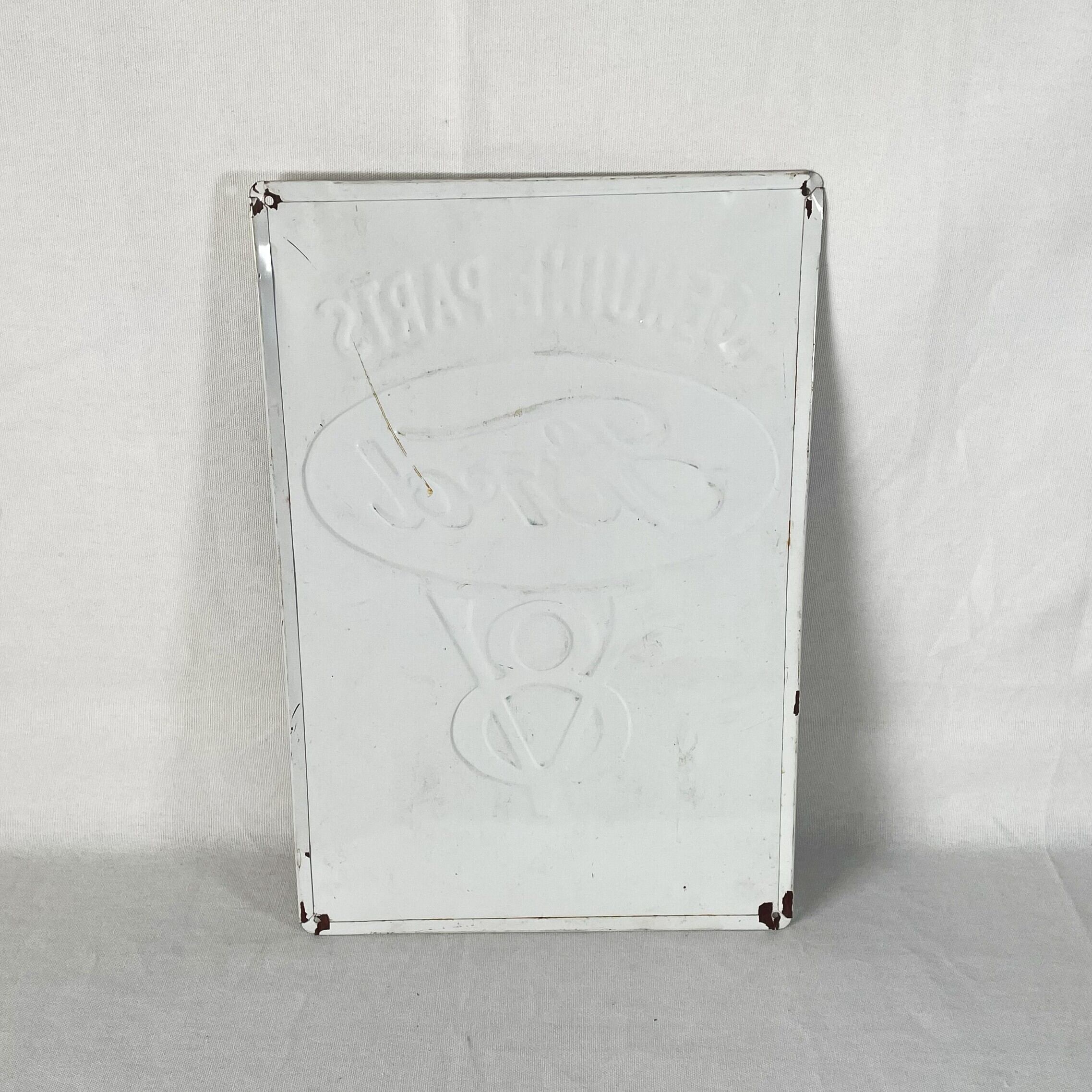 年代は不明ですがこちらはエンボス加工された本物のヴィンテージ看板です。