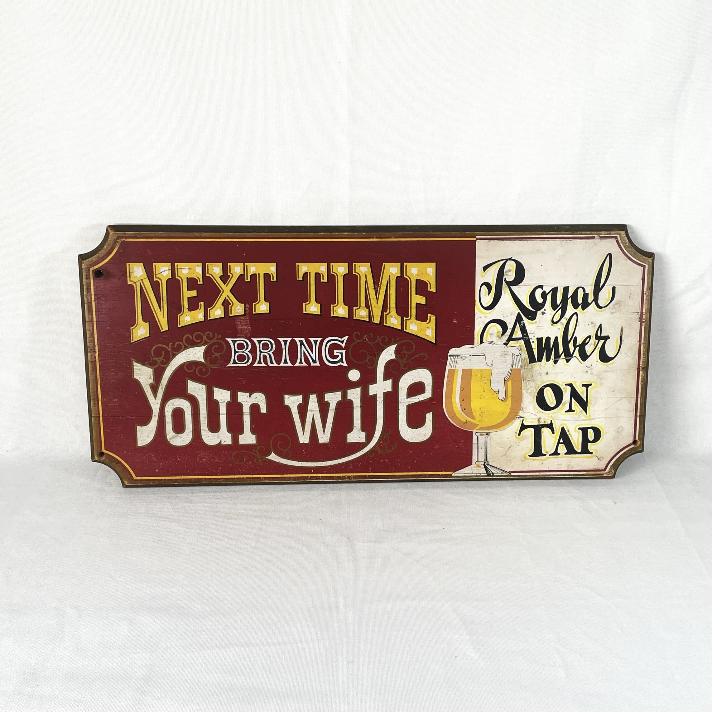 このRoyal Amberは60~80年代に人気のあったビールブランドで恐らくそのまま看板を転用したのだと思われます。すでに製造はされていないブランドですが90年代に会社が売却され、現在はパブストがAmber Royalのレーベルを所有していると考えられています。その時代背景や歴史を含めて面白い看板だなと思い買い付けております。