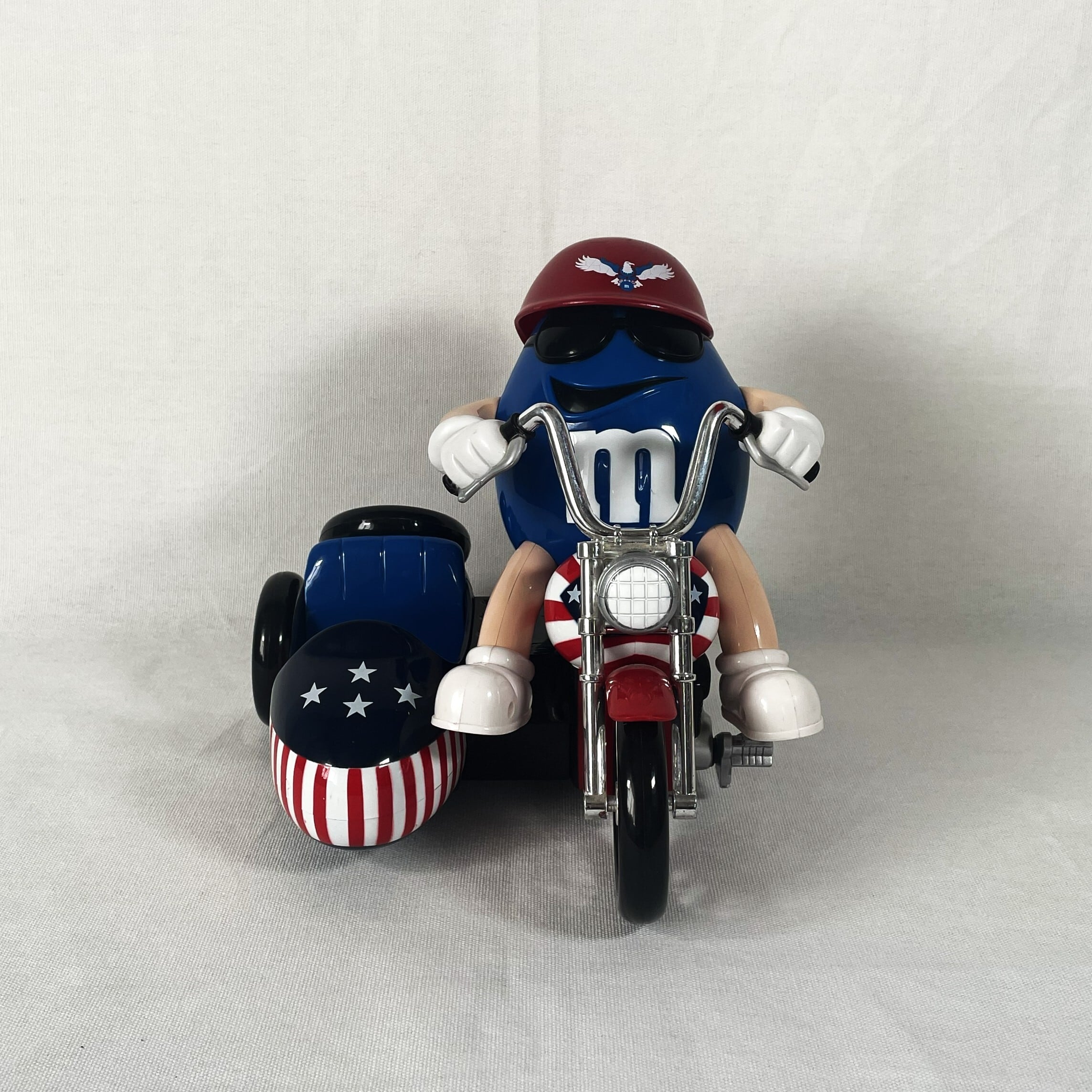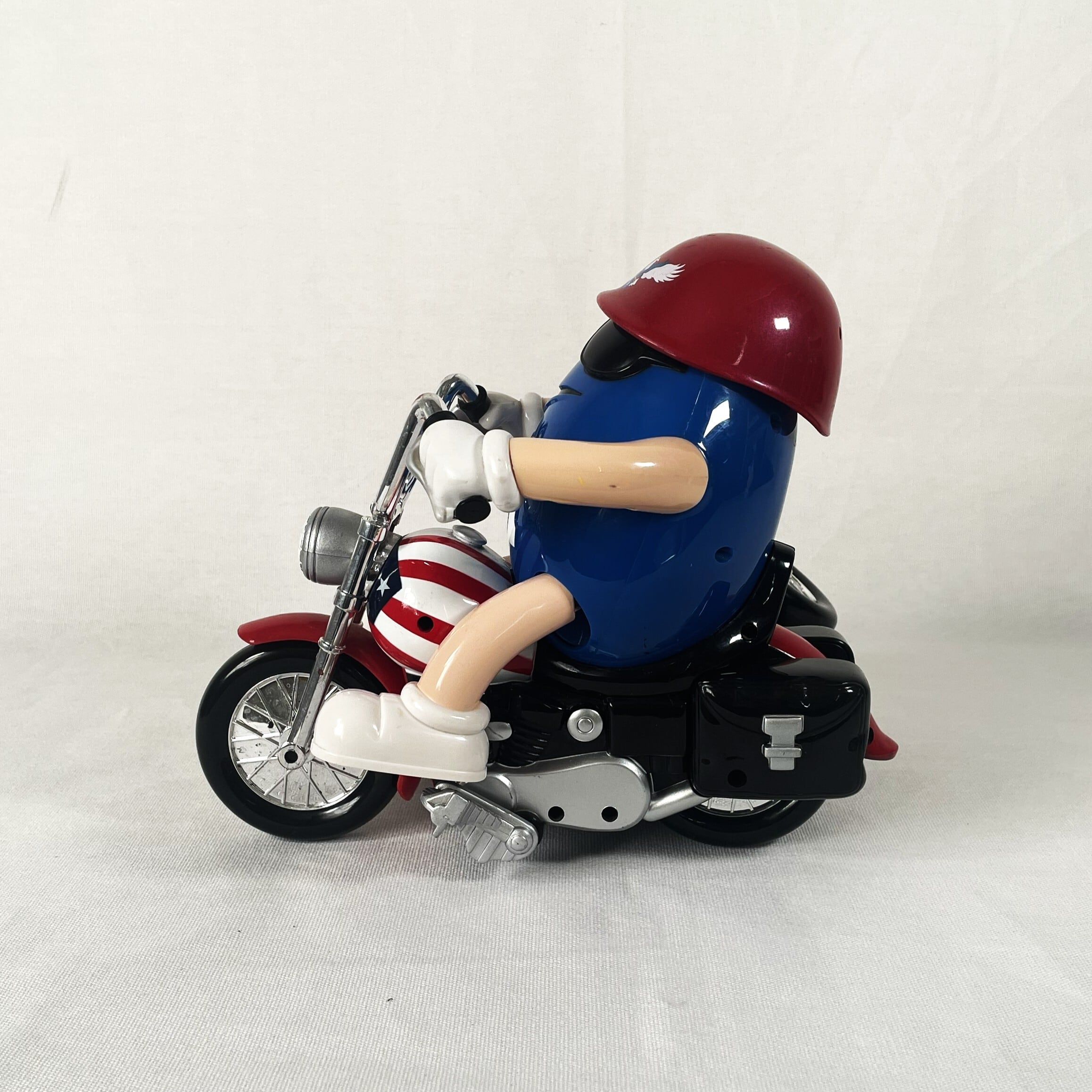 ザ・アメリカンなバイクにまたがったエムアンドエムズらしいデザインです。