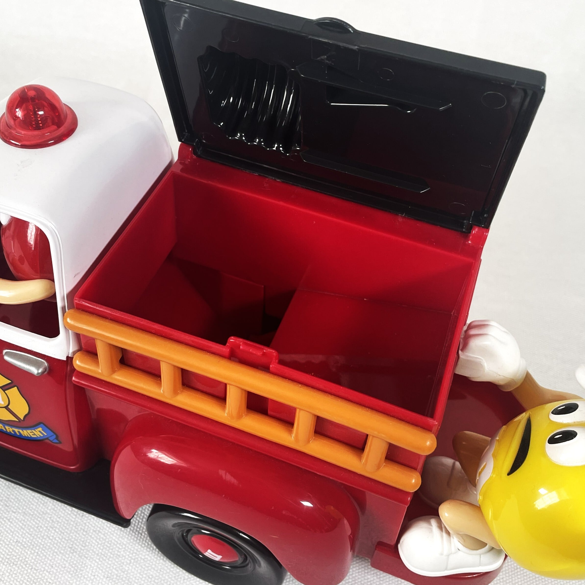 荷台の蓋を開けチョコレートを入れて右側のはしごを下げることでイエローの横からチョコレートが出てくる仕組みになっています。
