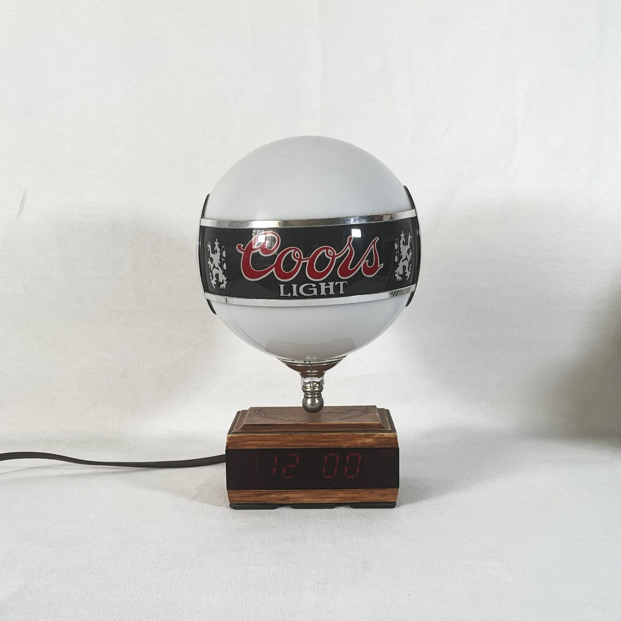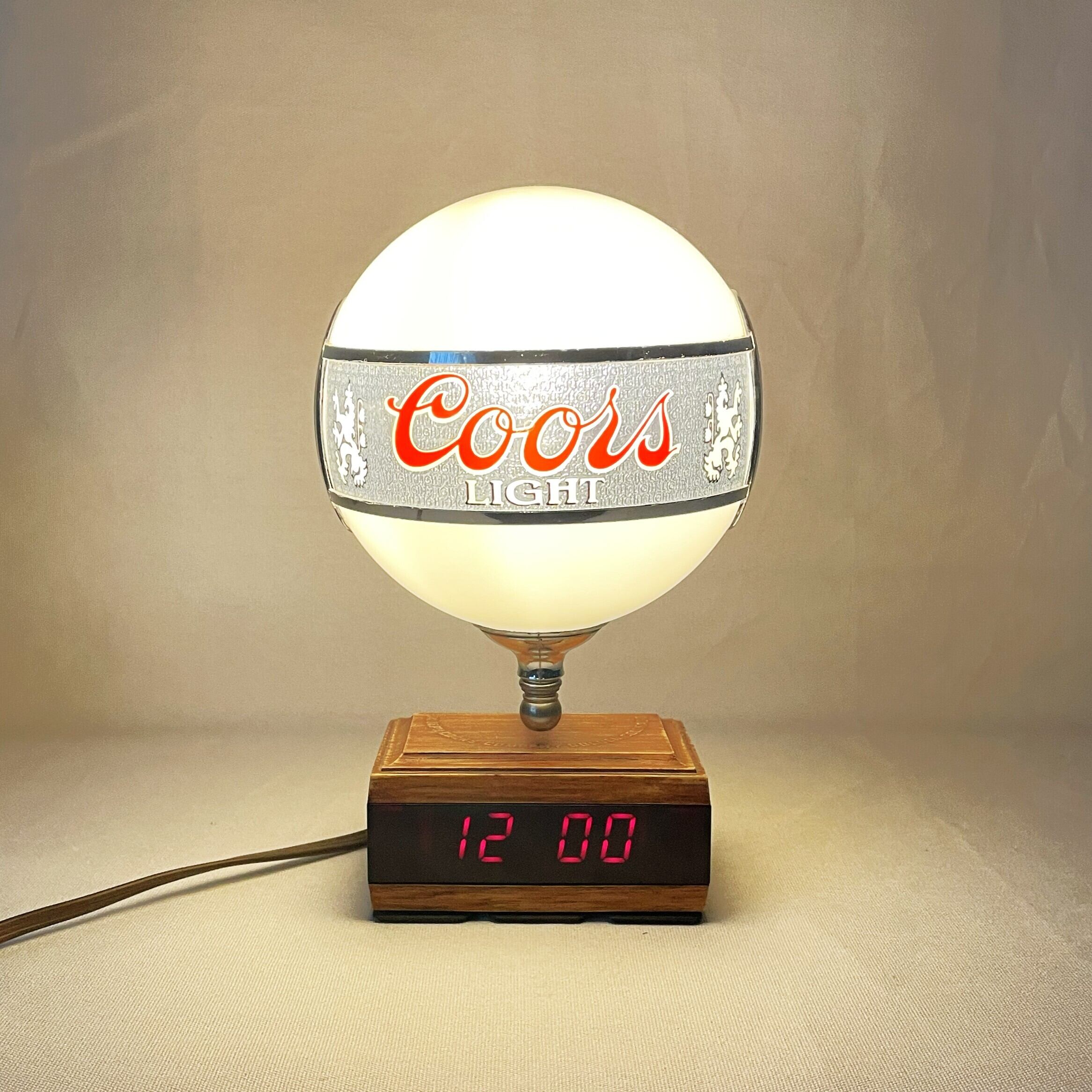 80s Coors Lighted Bar Lamp with Clock Base